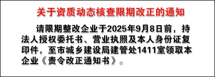 • 關(guān)于資質(zhì)動(dòng)態(tài)核查《責(zé)令(限期)改正通知書(shū)》的送達(dá)公告